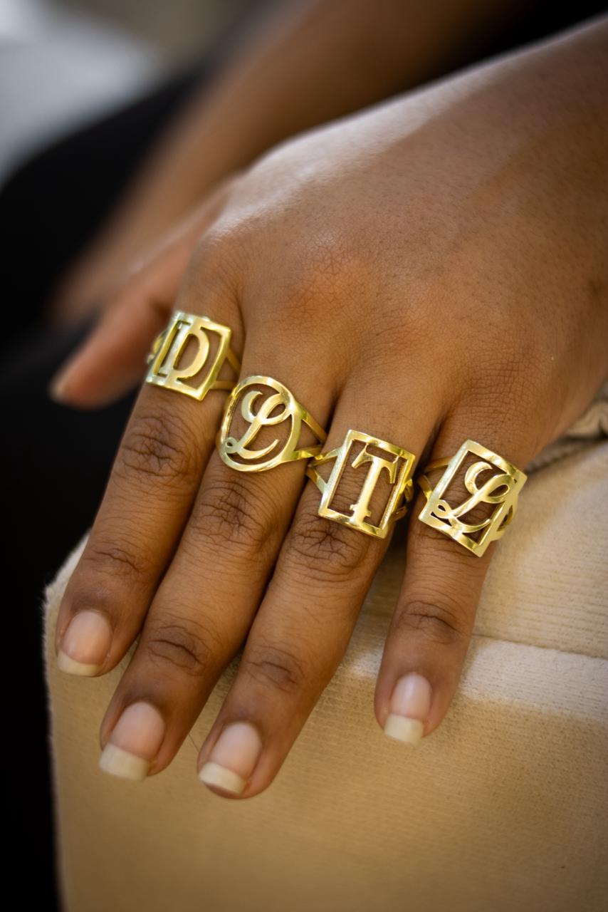 ANEL DE LETRA VAZADO - BANHADO A OURO
