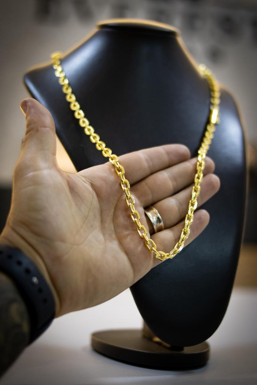 CORRENTE CADEADO QUINA DE 6MM - BANHADA A OURO