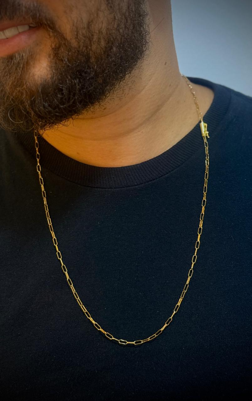 A Corrente Cartier Fio Fino Industrial 2mm é uma peça elegante e versátil, perfeita para quem busca um acessório delicado com alta resistência. Seu design clássico Cartier, aliado ao padrão industrial, proporciona um visual moderno e sofisticado, ideal para uso diário ou para compor com pingentes.