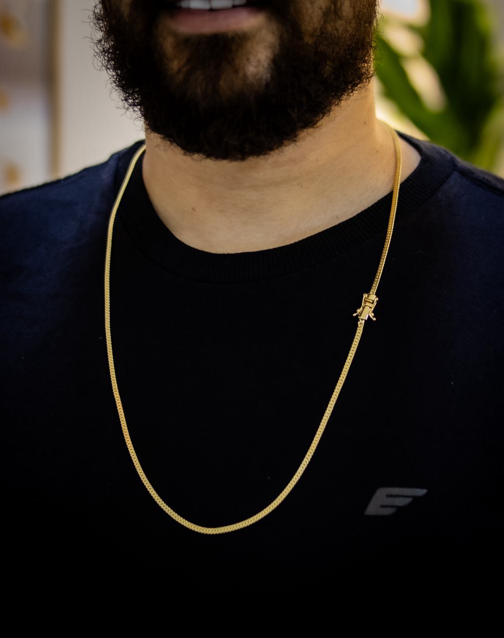 A Corrente Esteira Laminada 2mm é ideal para quem busca um acessório fino, elegante e versátil para o dia a dia. Seu design laminado proporciona um brilho suave e contínuo, criando um visual moderno e sofisticado que combina com qualquer estilo.