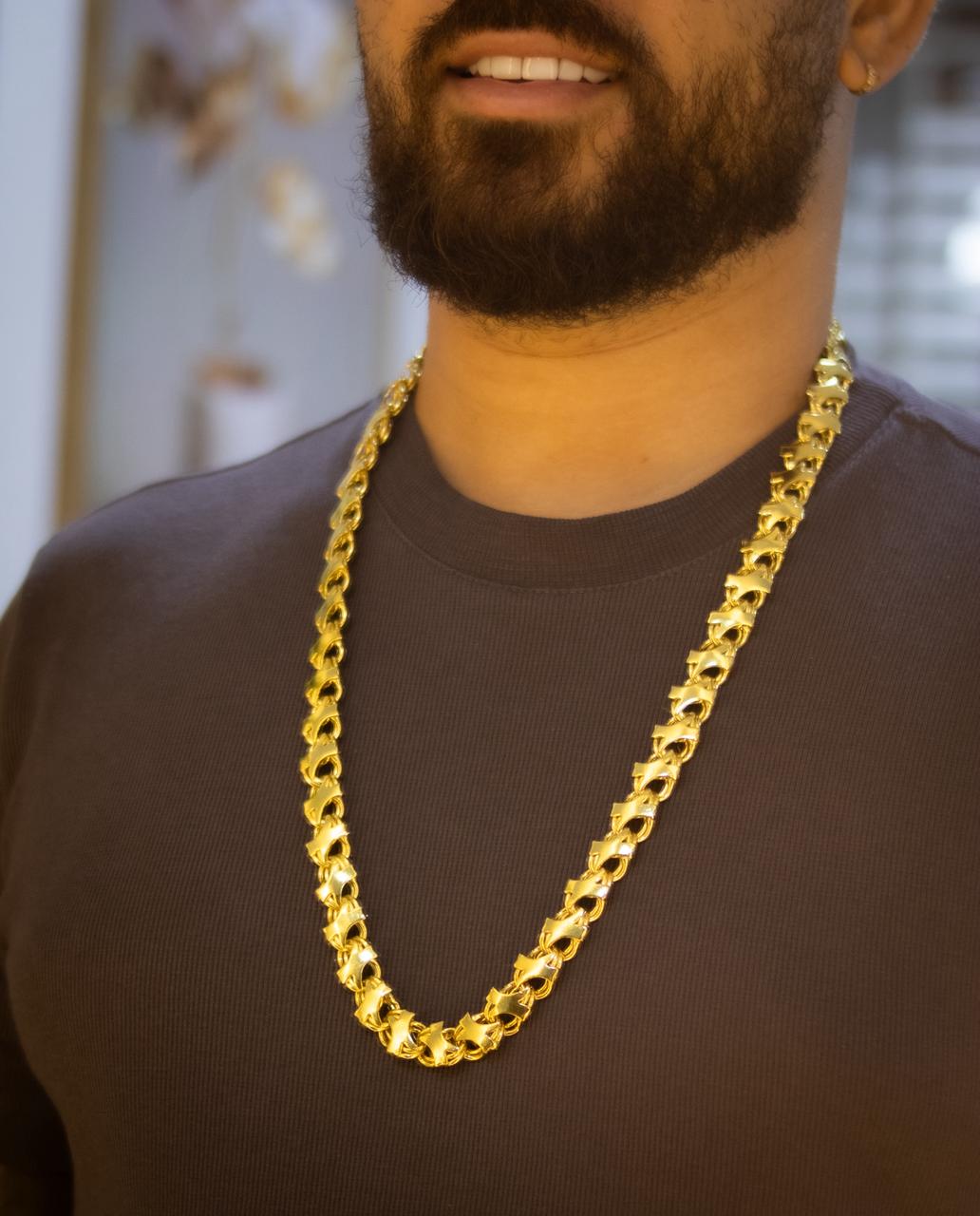 Uma corrente versátil, perfeita para uso individual ou com pingentes, ideal para quem valoriza estilo, presença e qualidade.