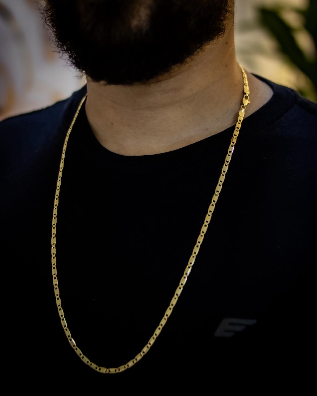 A Corrente Piastrine é uma peça moderna e elegante, conhecida por seus elos planos e alinhados que criam um visual sofisticado com brilho contínuo. Seu design delicado e ao mesmo tempo marcante valoriza qualquer composição, sendo perfeita para uso diário ou ocasiões especiais.