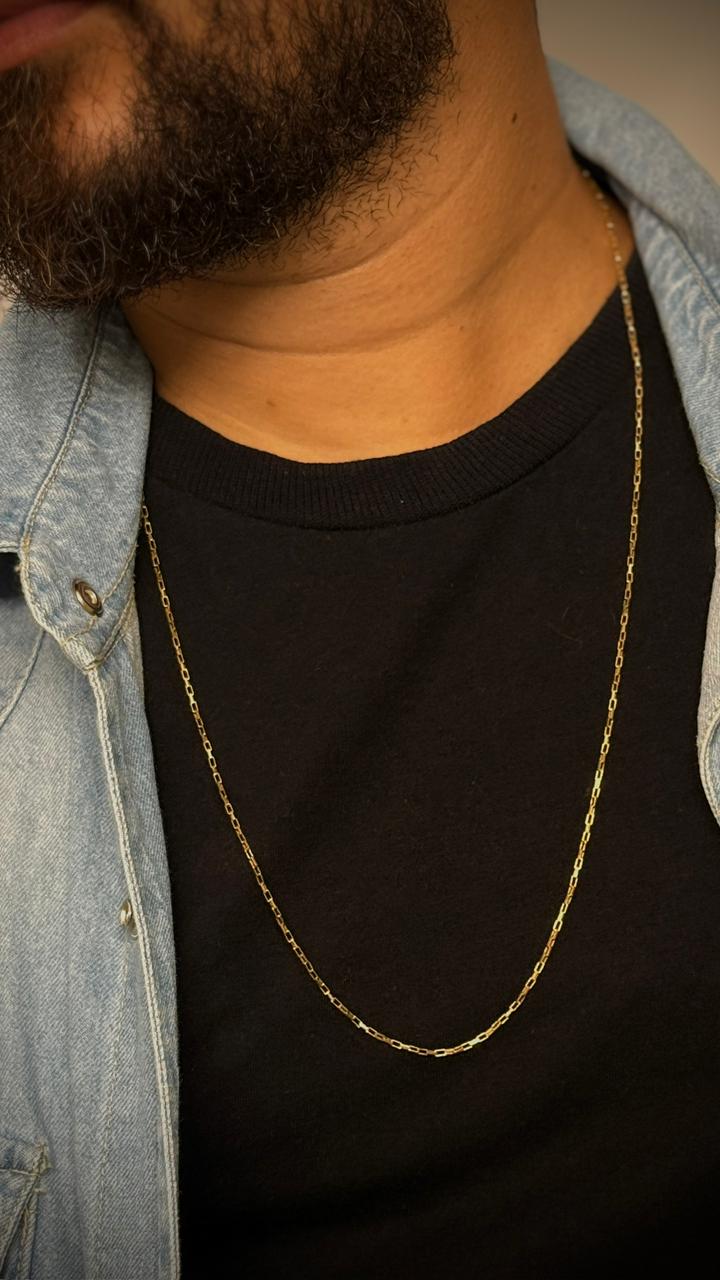 A Corrente Tijolinho 1mm é a escolha perfeita para quem busca um acessório fino, delicado e sofisticado. Seu design com elos compactos estilo tijolinho proporciona um brilho discreto e elegante, ideal para uso diário ou para compor com pingentes leves.