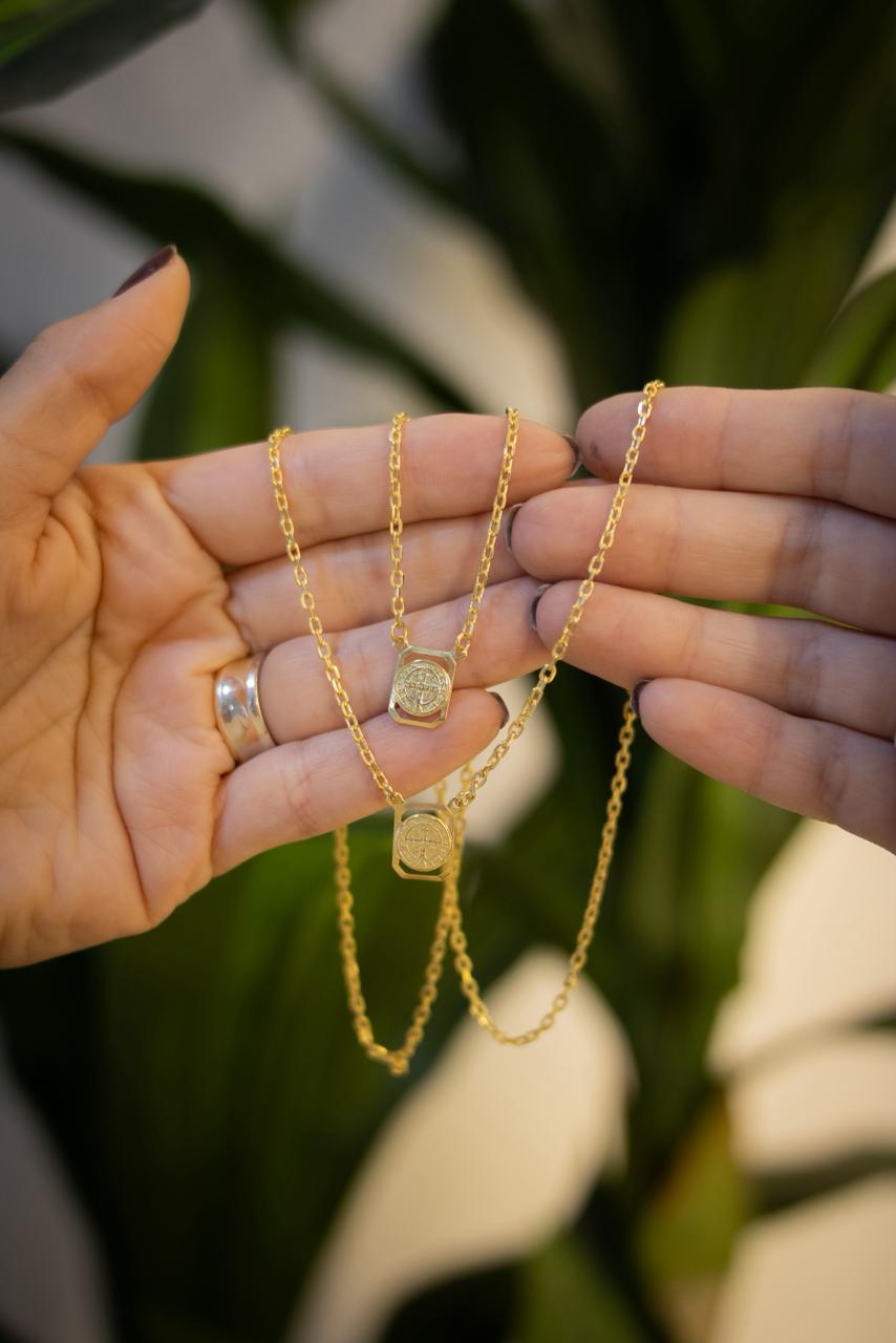 ESCAPULARIO SÃO BENTO VAZADO - BANHADO A OURO