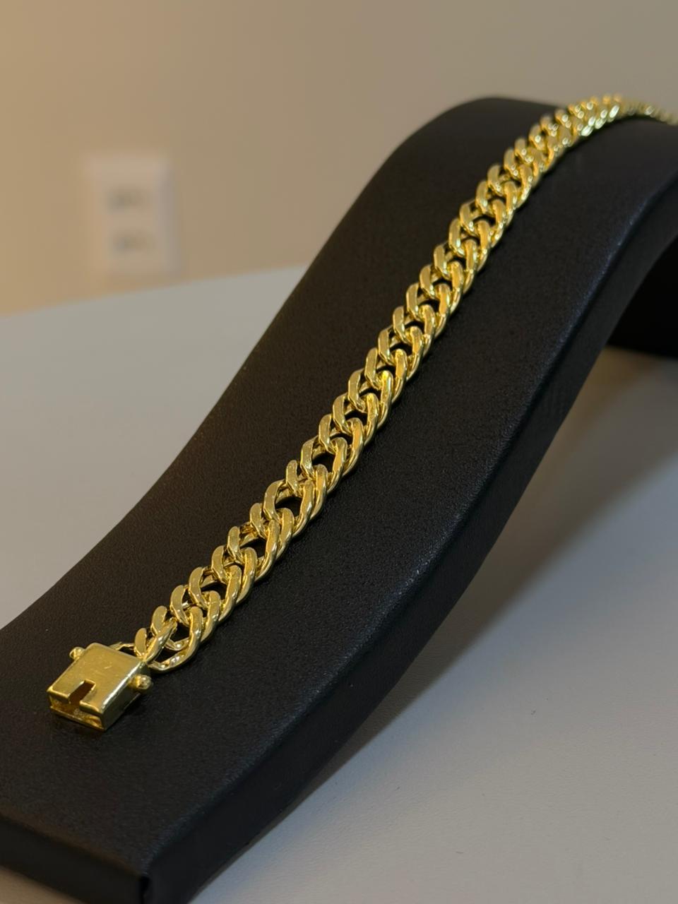 Produzida 100% na moeda antiga, a pulseira garante excelente resistência e acabamento premium. Para maior durabilidade e ainda mais brilho, você pode optar por: