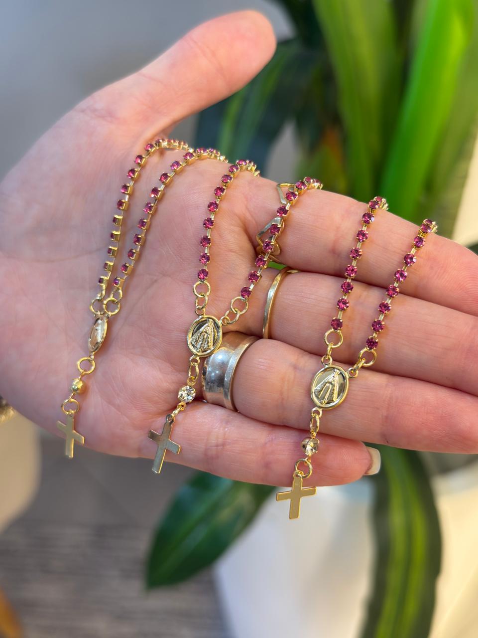 PULSEIRA TERÇO CRAVEJADO - BANHADO A OURO